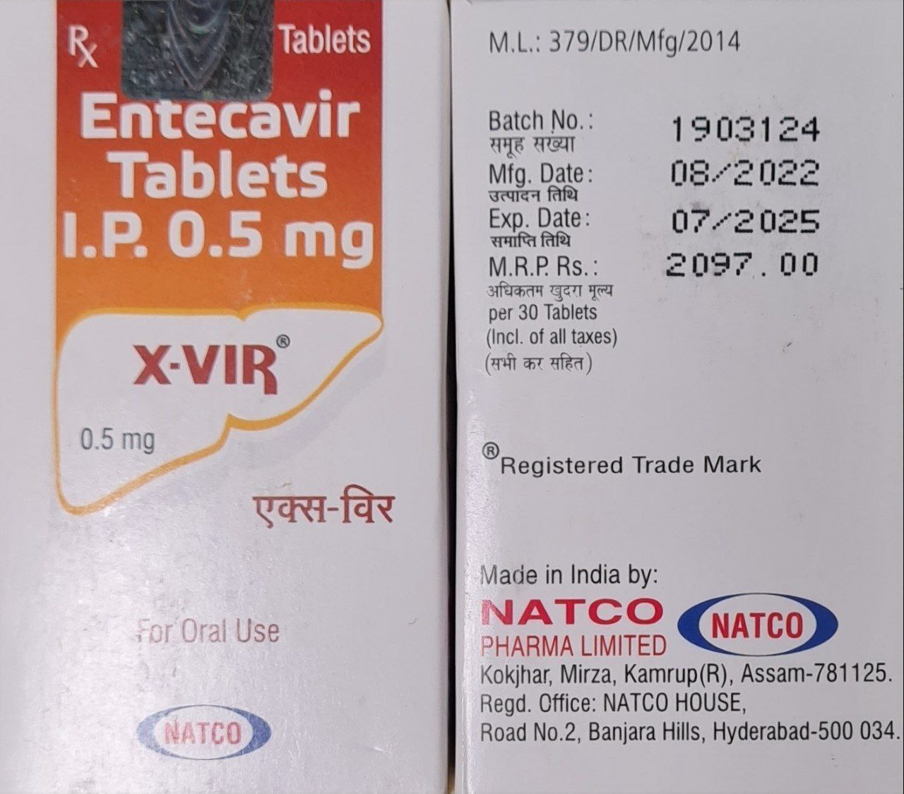 Бараклюд ( ентекавір) 0,5 мг 30 таб, генерик, Індія,