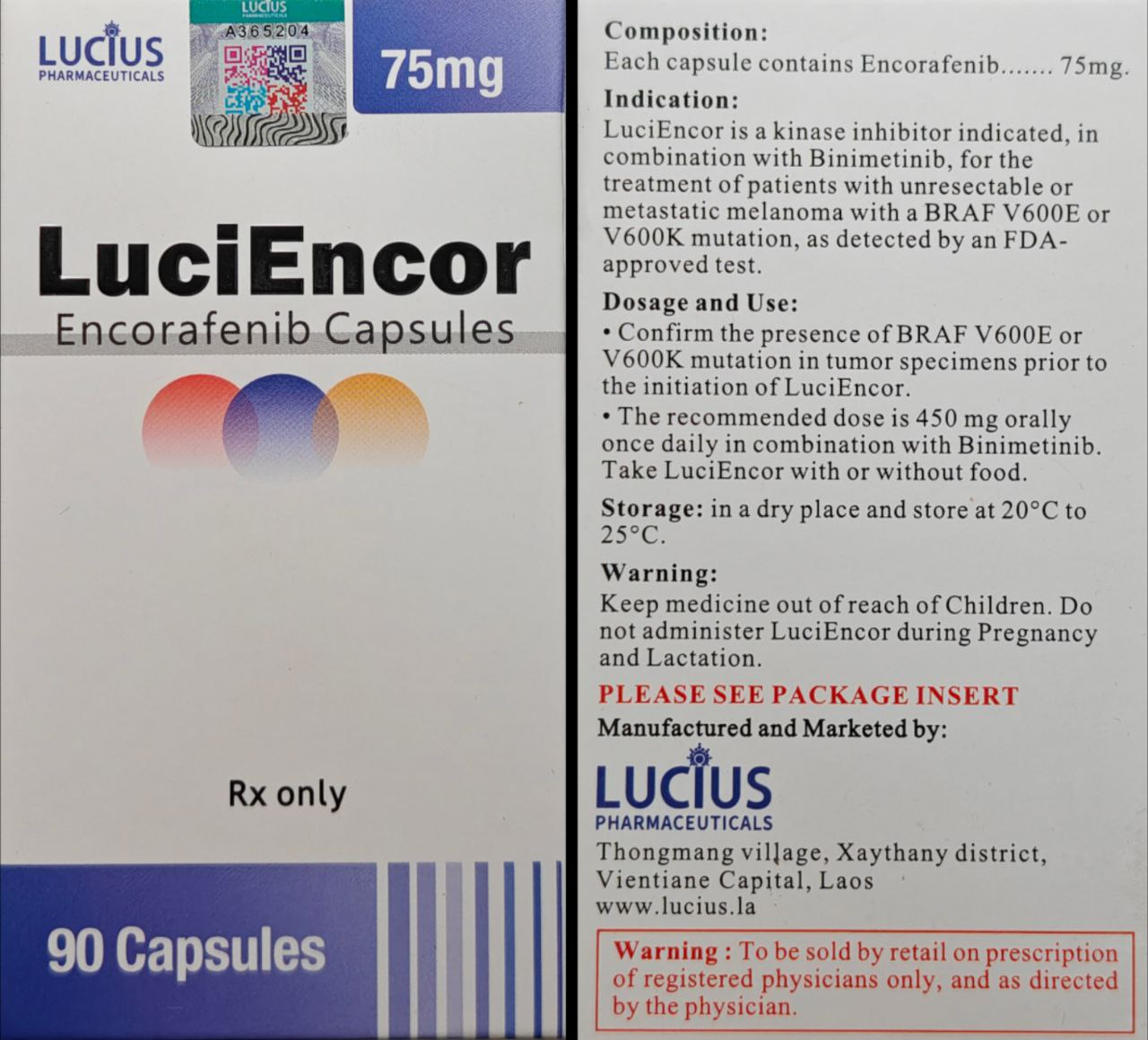 Энкорафениб показан в комбинации с биниметинибом для лечения взрослых пациентов с неоперабельной или метастатической меланомой с мутацией BRAF V600E или V600K и метастатическим немелкоклеточным раком легкого (НМРЛ) с мутацией BRAF V600E. Он также показан в комбинации с цетуксимабом для лечения взрослых пациентов с метастатическим колоректальным раком с мутацией BRAF V600E.5